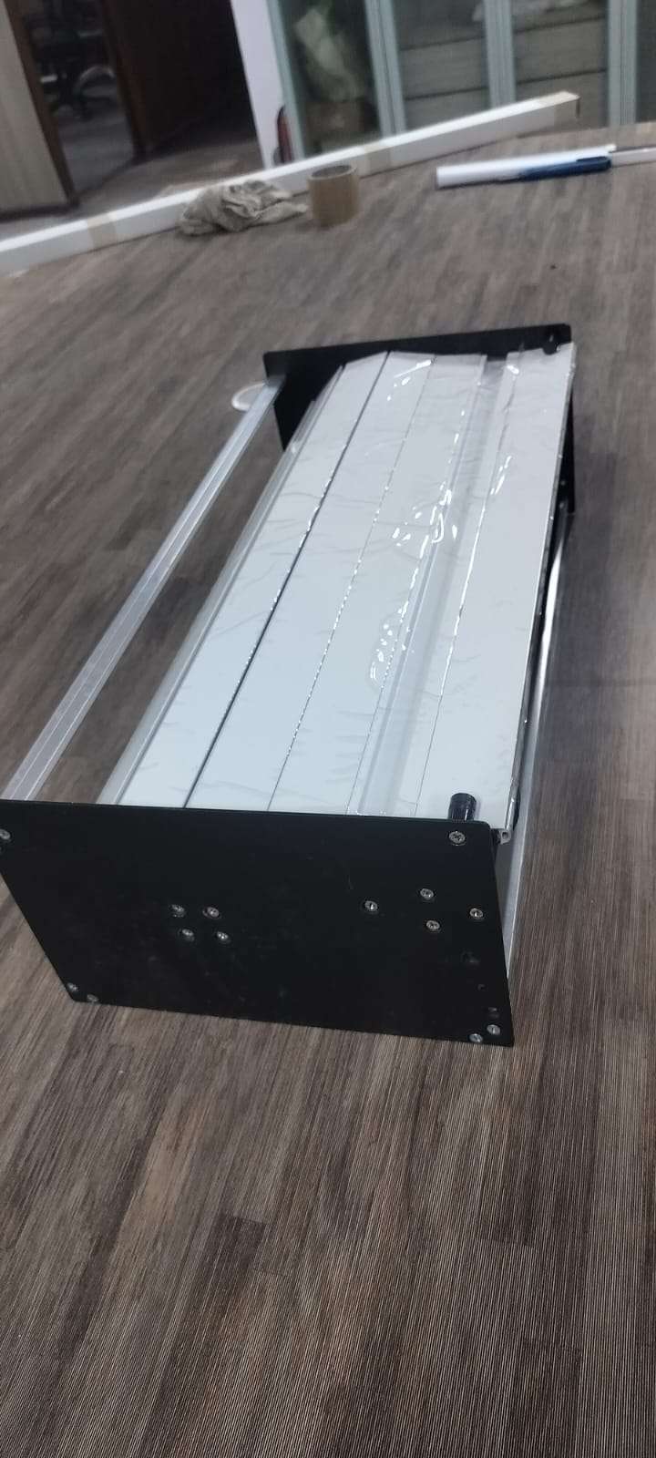 Roller Shutters are heavy duty mechanism door systems which can be used in numerous applications both horizontally and vertically. White glass look enhances contemporary kitchen designing with its range of Roller Shutter Systems. Aluminum Silver roller shutters are made of tempered safety and are suitable for cabinets having a width of 600 mm aluminum Rolling Shutter 600 mm x 1320 mm , Rolling shutter to be installed in wooden cabinet . In case the cabinet is made ,Inner cabinet size should be 564 mm. The roller shutter door is fully-assembled tambour profile and running mechanism system in one box.